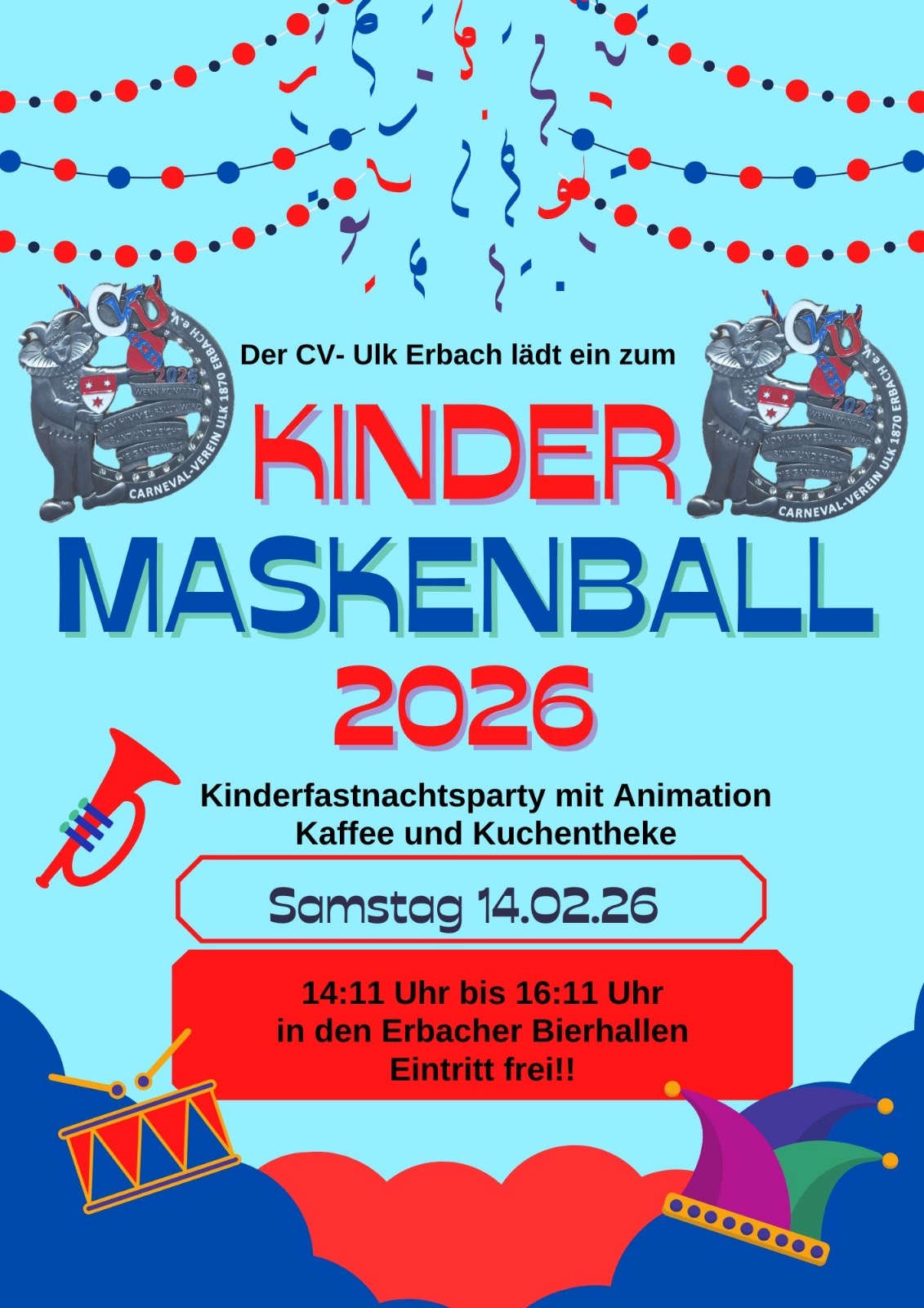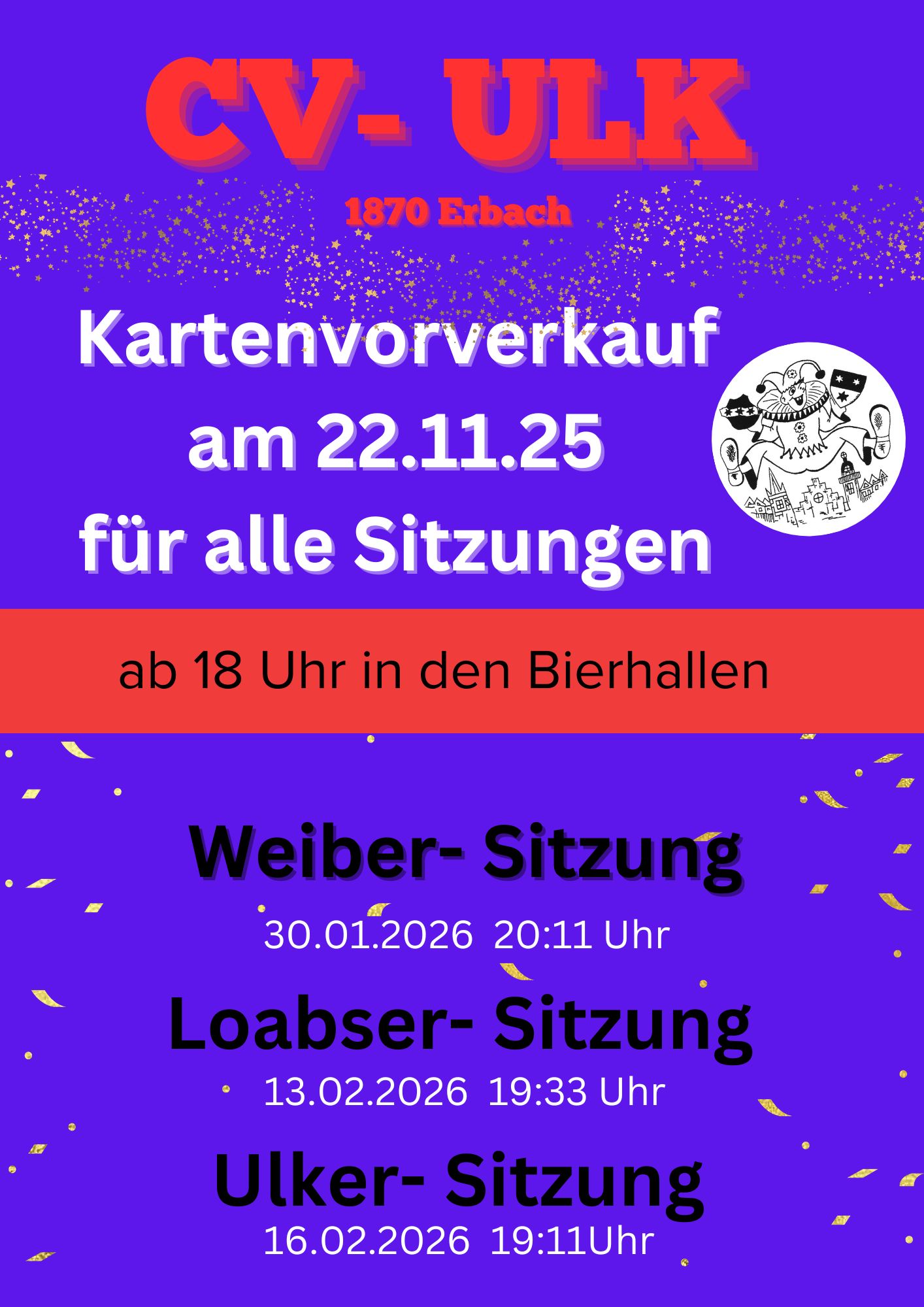 Die Loabser-Sitzung findet statt am Freitag, 13. Februar 2026 und die Ulker-Sitzung am Rosenmontag, 16. Februar 2026 in der Werner-Borchers-Halle Erbach.