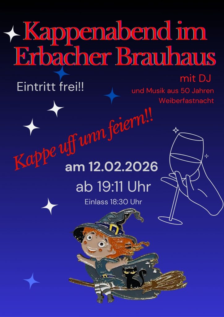 Der Kartenvorverkauf hierzu findet wie in den vergangenen Jahren, wieder in der Erbacher Markt- und Bierhalle statt.